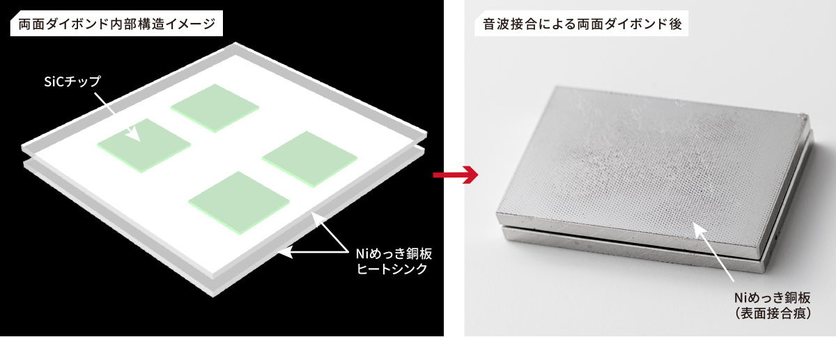 ヒートシンクに挟まれたパワー半導体SiCチップの音波接合による両面ダイボンド