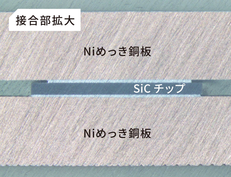 - SiCチップとNiめっき銅ヒートシンク間の接合