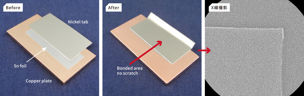 ニッケルタブと銅板の音波接合