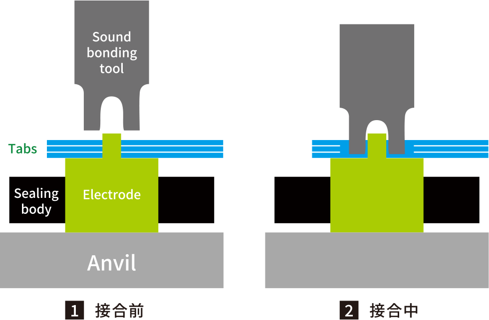 大型コンデンサ 積層タブの音波接合