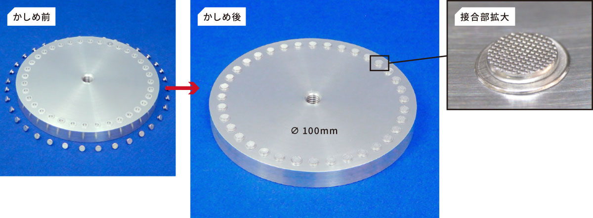 大きなアルミ板上の多点・一括リベットかしめ接合